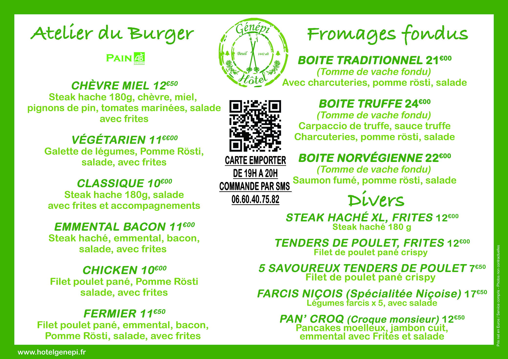 Emporter ouvert le soir uniquement de 19H à 20H